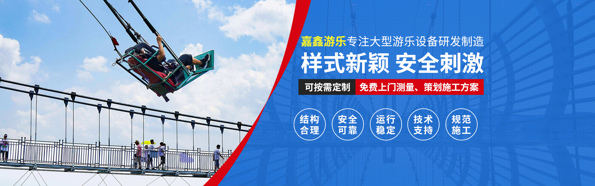 公司主要提供滑索、吊橋、水上項(xiàng)目、叢林飛躍、空中自行車(chē)、滑道、拓展等游樂(lè)設(shè)施的制造、安裝、維修及銷(xiāo)售業(yè)務(wù)。